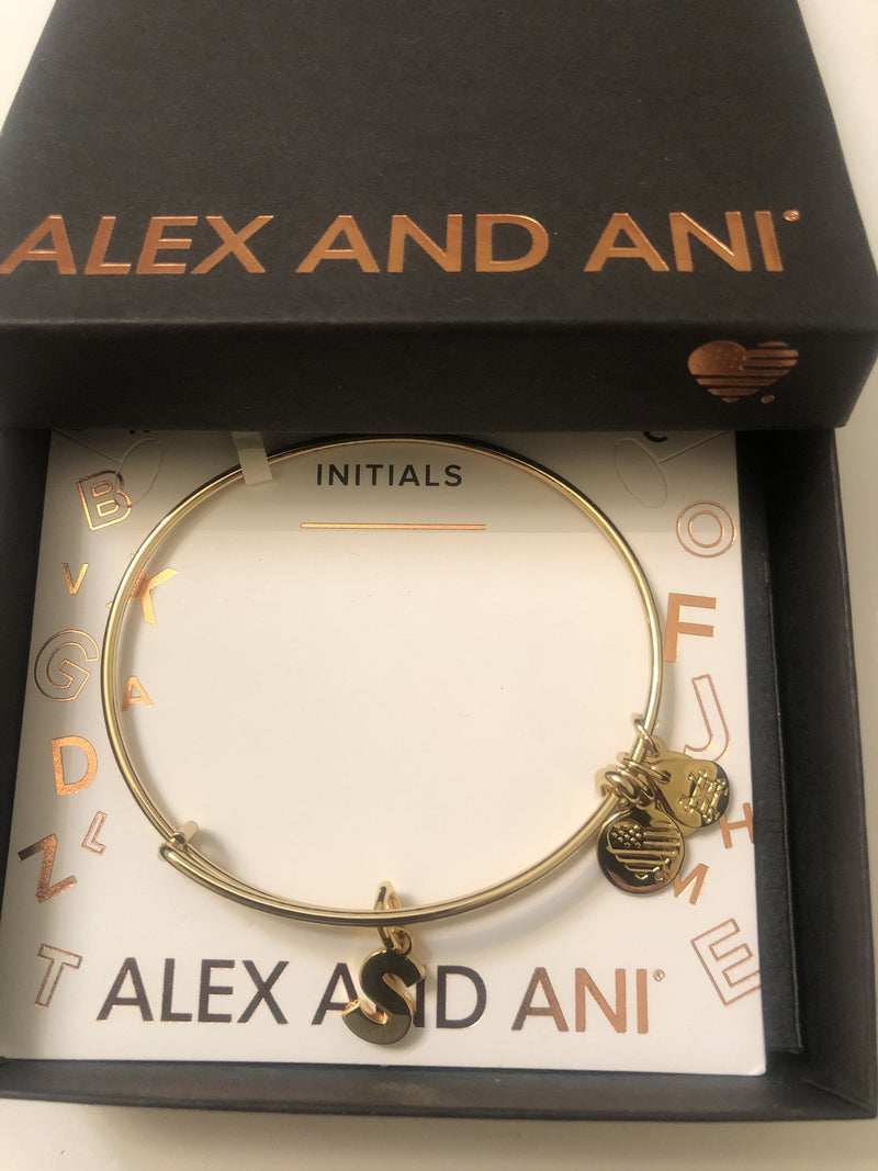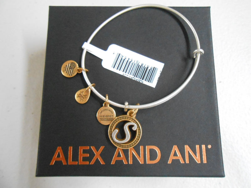 Alex and Ani Initial S Bangle Bracelet TWO-TONE New Tag Box Card 2018