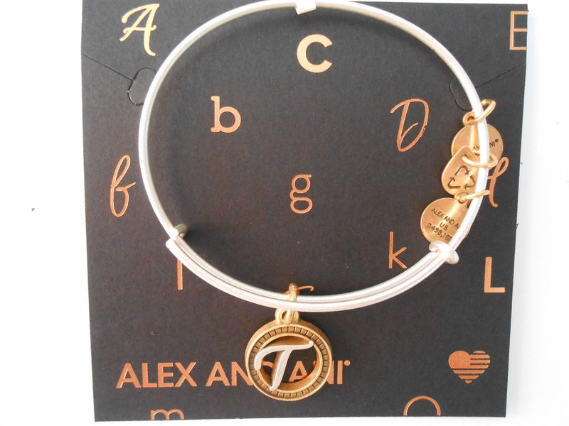 Alex and Ani Initial T Two-Tone Charm Bangle Bracelet - Rafaelian Gold and Silver Finish - A18EBINT20TTRS