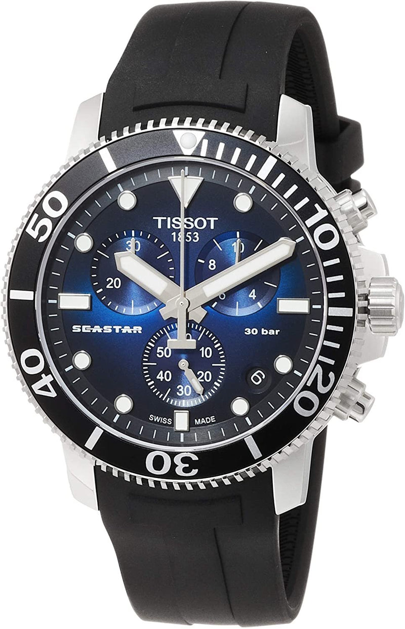 Tissot Men's Seastar 660/1000 Stainless Steel Swiss Quartz Rubber Strap, Black, 22 Casual Watch (Model: T1204171704100)