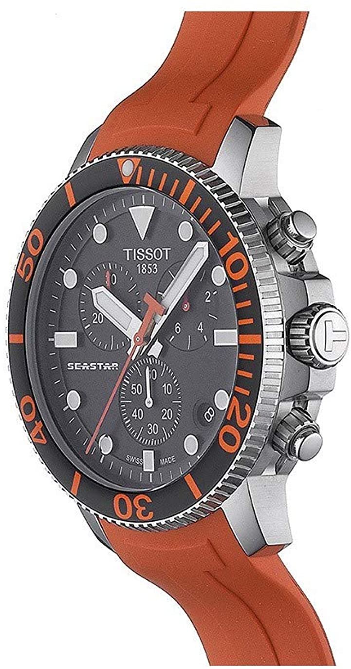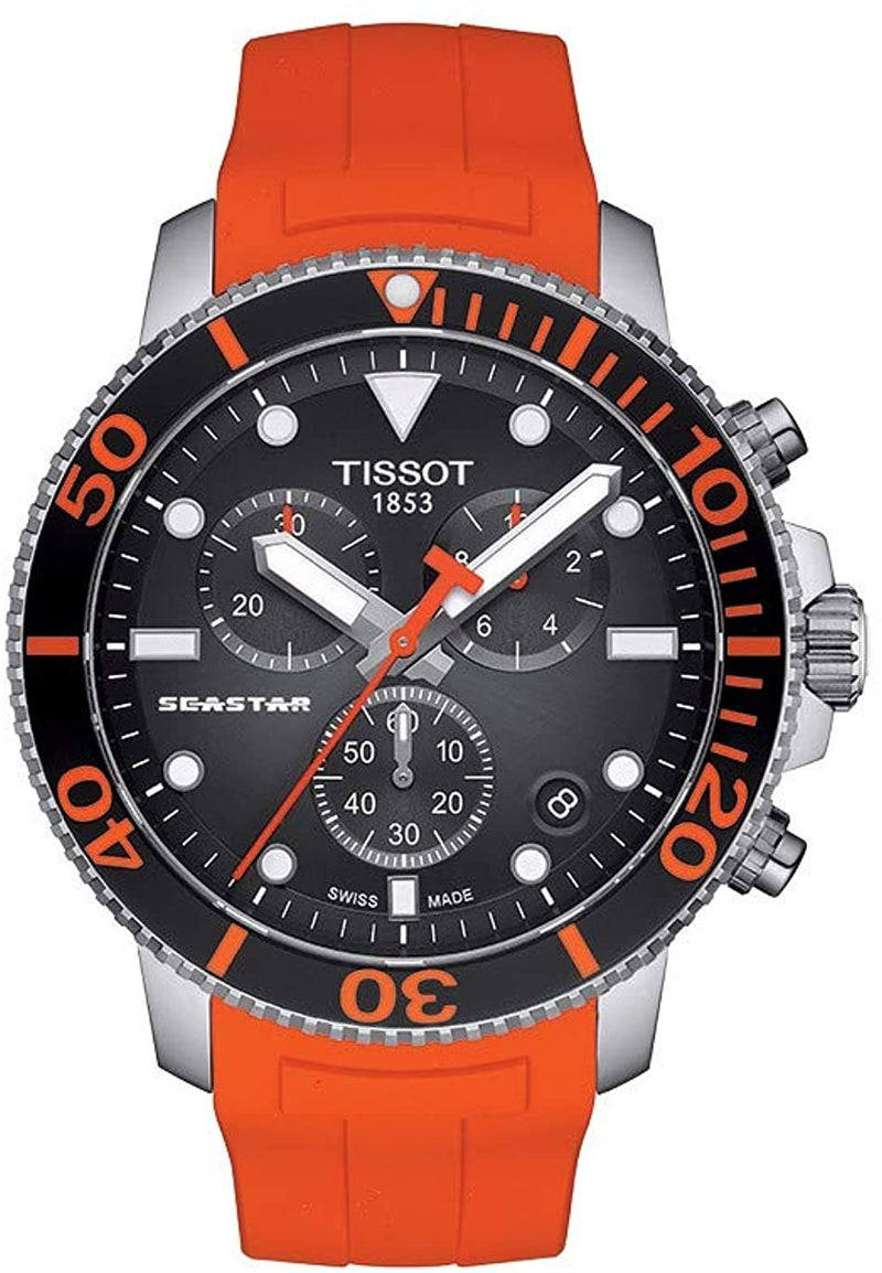Tissot Men's Seastar 660/1000 Stainless Steel Swiss Quartz Rubber Strap, Orange, 22 Casual Watch (Model: T1204171705101)