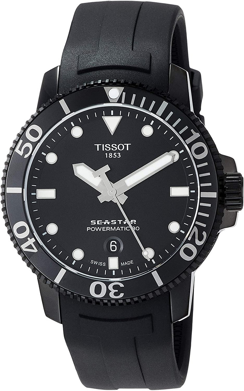 Tissot Men's Seastar 660/1000 Stainless Steel Swiss Automatic Rubber Strap, Black, 21 Casual Watch (Model: T1204073705100)