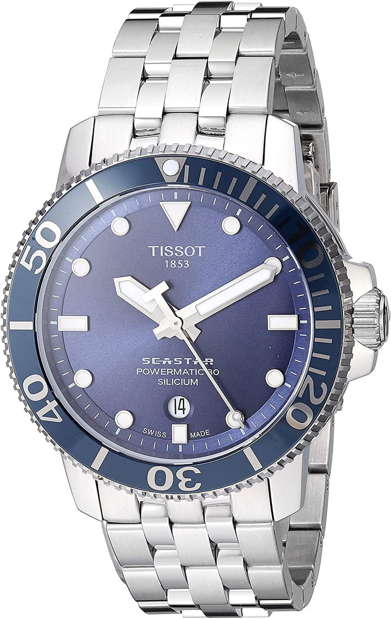 Tissot Men's Seastar Swiss Automatic Sport Watch with Stainless Steel Strap, Silver, 21 (Model: T1204071104101)