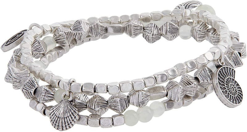 Alex and Ani Nautilus Stretch Bracelet, Set of 3 Rafaelian Silver/Green One Size