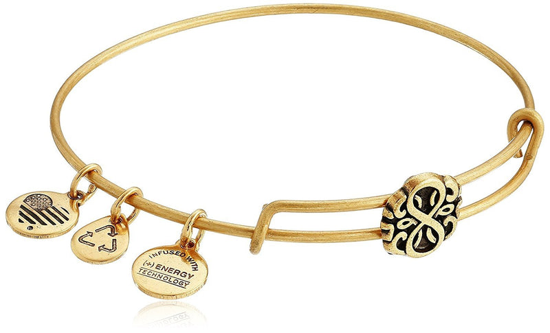 Alex and Ani Path of Symbols Expandable Bangle for Women, Four Leaf Clover Embossed Charm, Rafaelian Gold Finish, 2 to 3.5 in