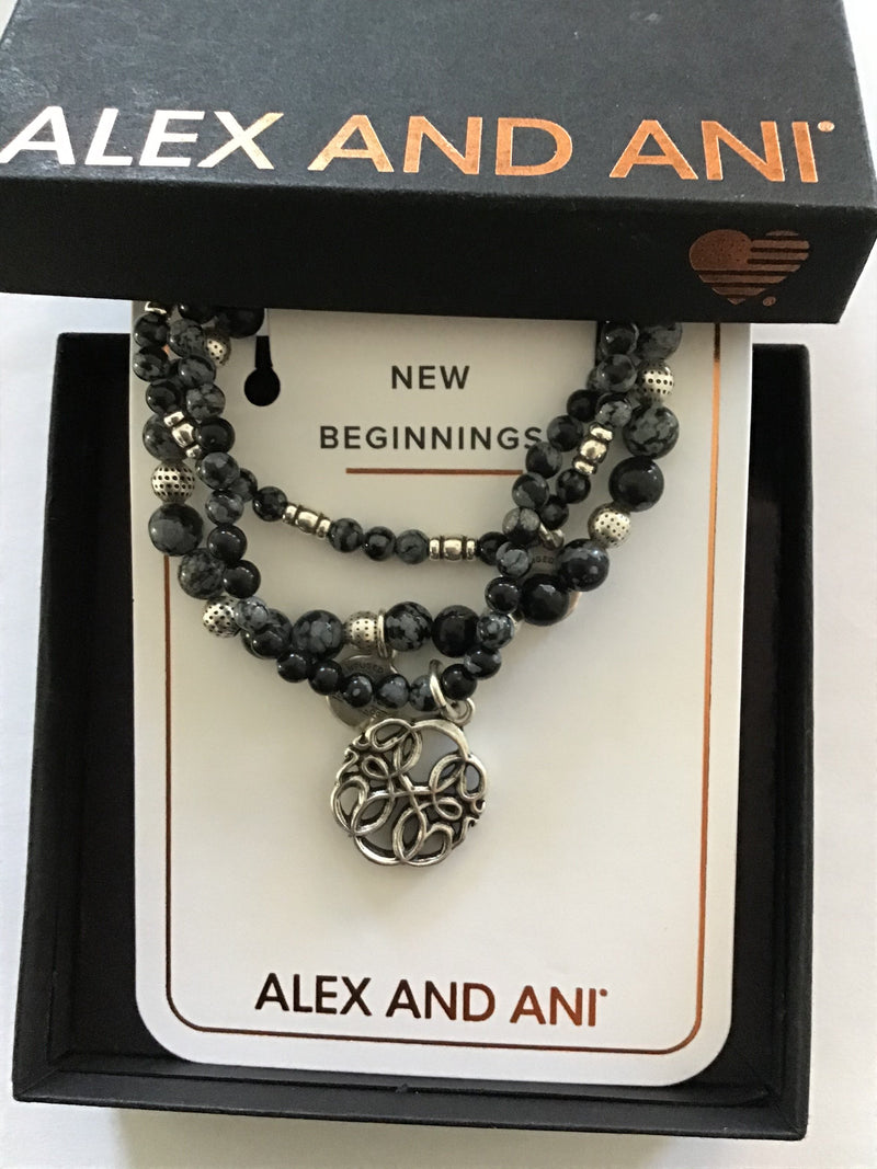 Alex and Ani Path of Life IV Bangle Bracelet Midnight Silver NWTBC