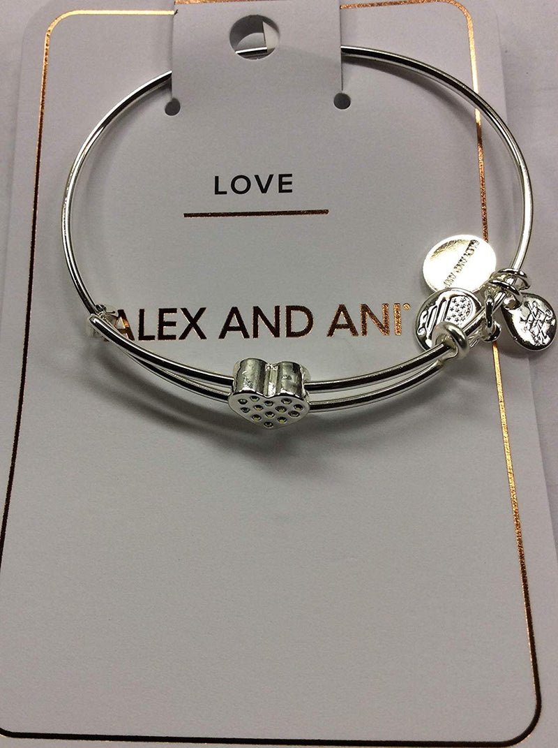 Alex and Ani Pave Heart Symbol Bead Bangle Bracelet Shiny Silver One Size