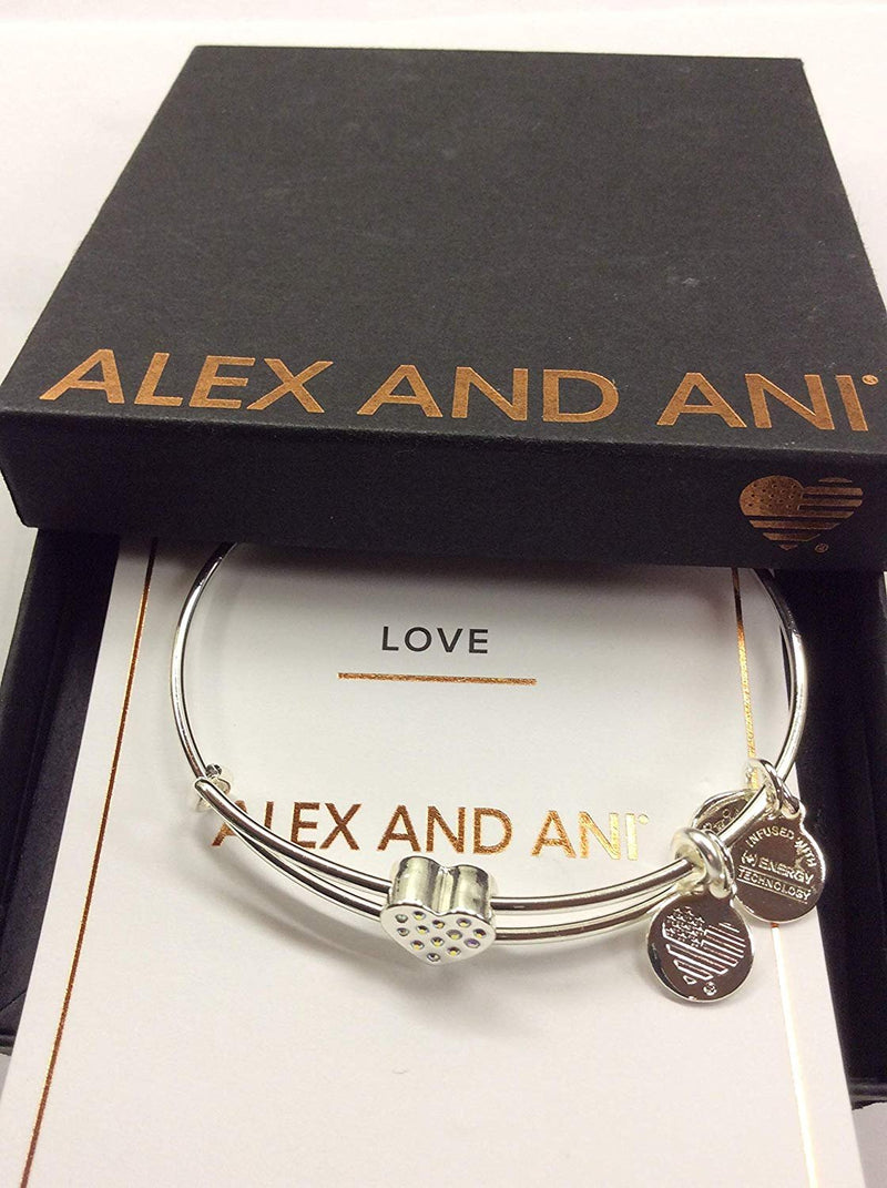 Alex and Ani Path of Symbols Expandable Bangle for Women, Heart Embossed Charm, Rafaelian Silver Finish, 2 to 3.5 in
