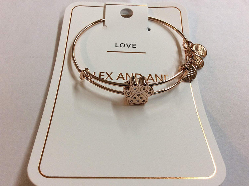 Alex and Ani Pave Paw Print Symbol Bead Bangle Bracelet Shiny Rose Gold One Size