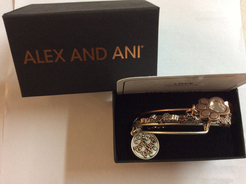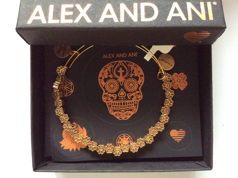 Alex and Ani Paw Print Beaded Bracelet Rafaelian Gold Tag Box Card