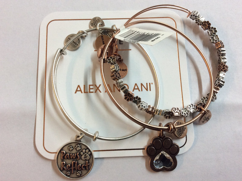 Alex and ANI Paws and Reflect Set of 3, Two-Tone Bangle Bracelet Rafaelian Rose Gold One Size