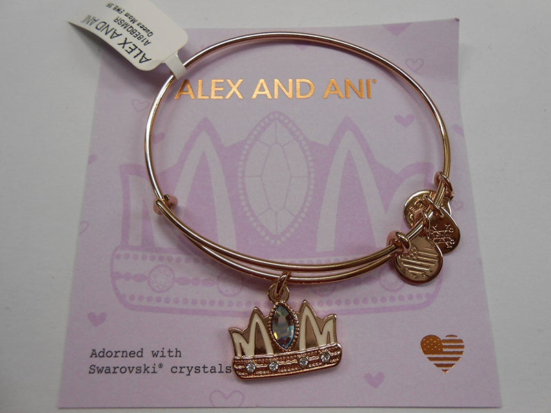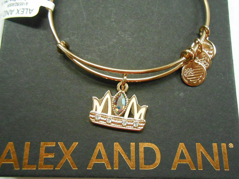 Alex and Ani Queen Mom Bangle Bracelet Shiny Rose Gold With Black Gift Box