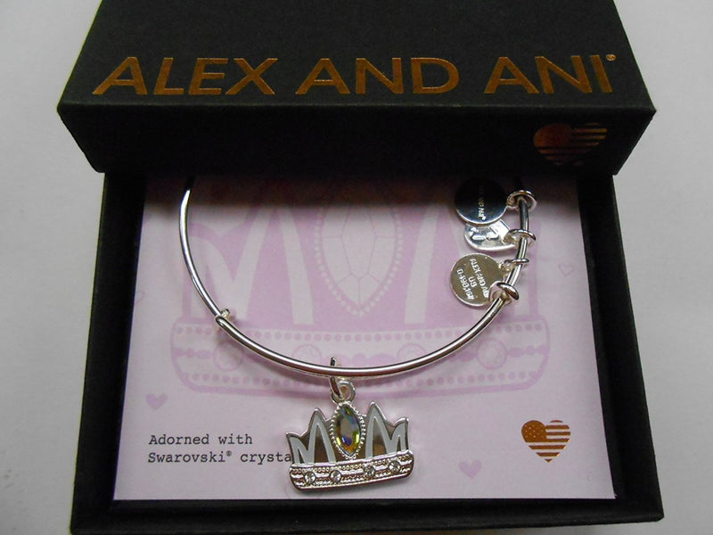 Alex and Ani Queen Mom Bangle Bracelet Expandable Shiny Silver Comes With Box