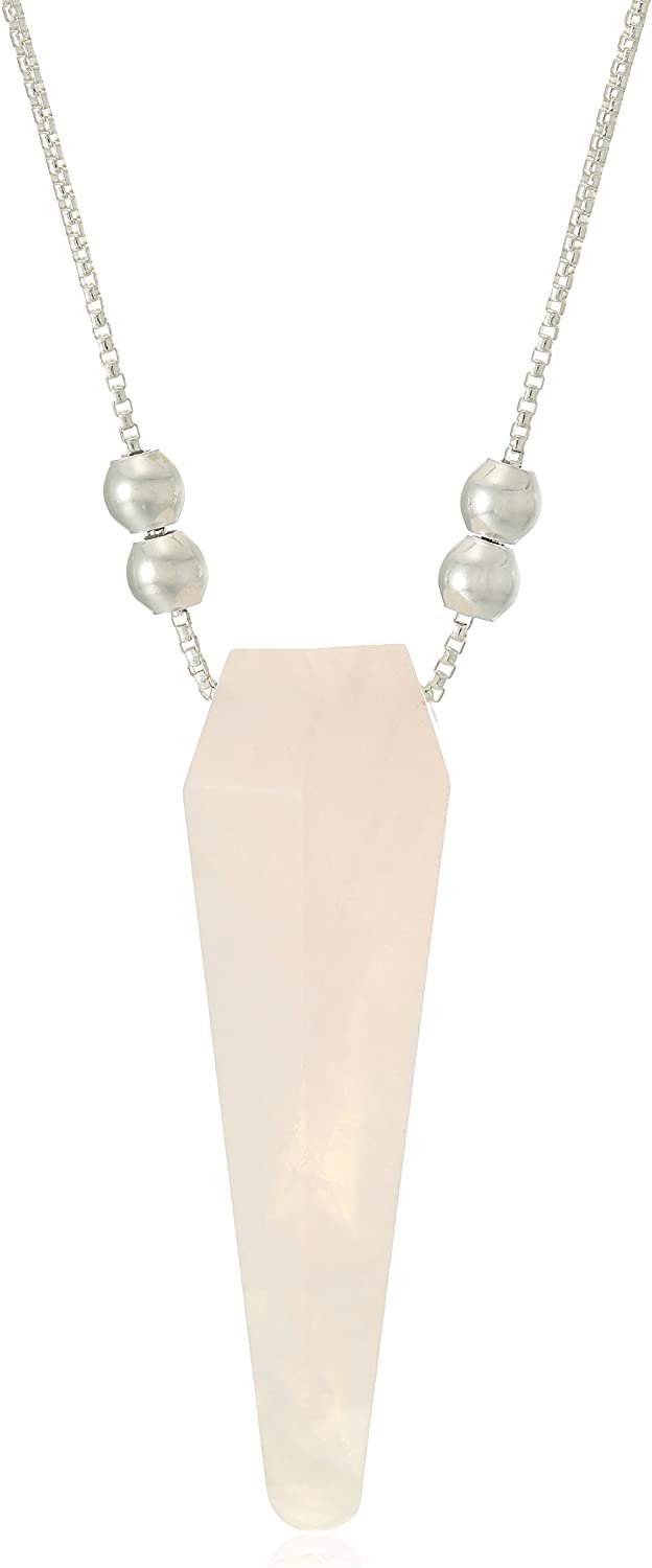Alex and Ani Rose Quartz Pendulum Sterling Silver Necklace
