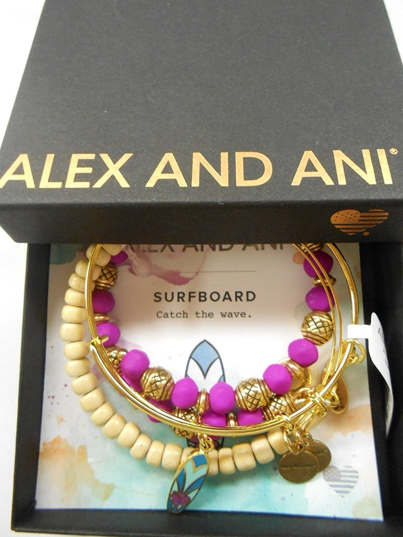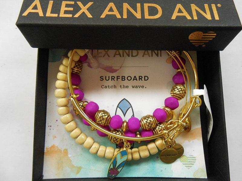 Alex and Ani Surfboard Set of 3 Bangle Bracelets Shiny Gold