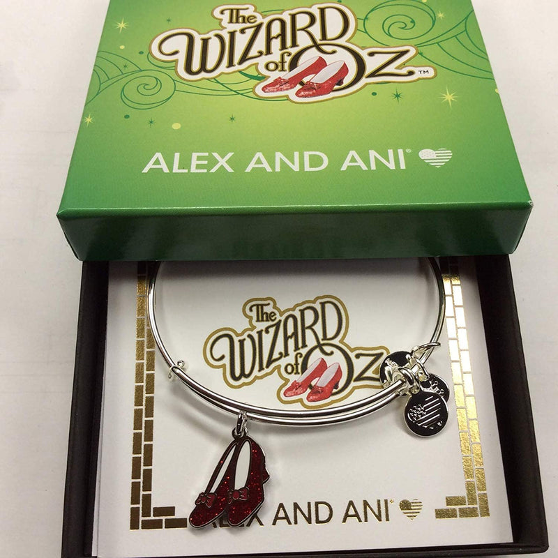 Alex and Ani Wizard of Oz, Glitter Ruby Slippers Bangle Bracelet Shiny Silver One Size