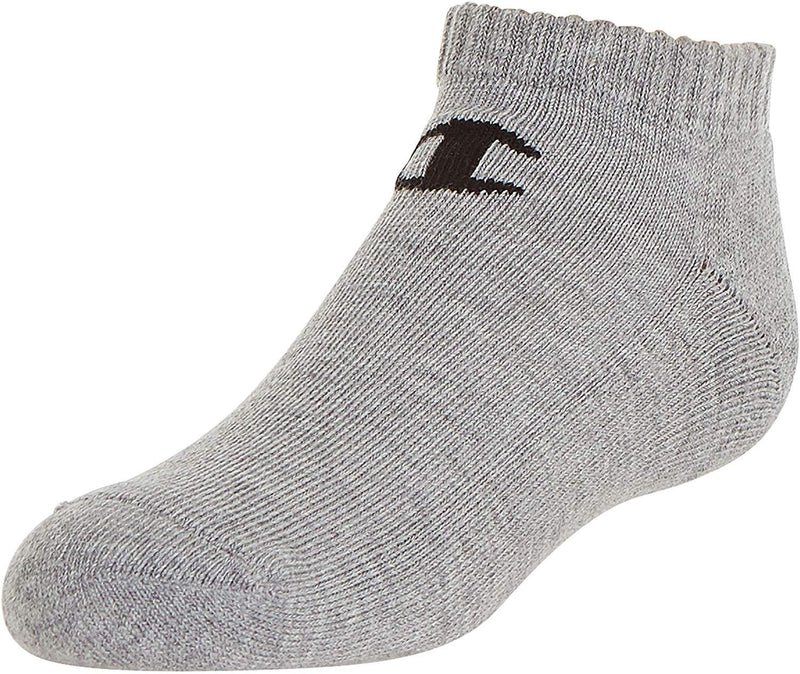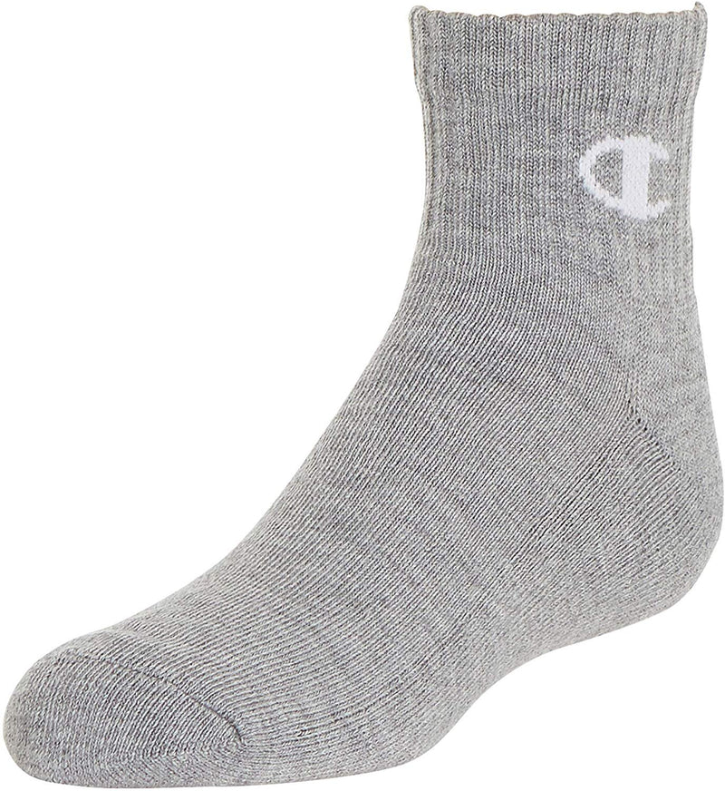 Champion Kids' Big 6-Pack Socks in Quarter or Low Cut, Oxford Gray, 9-11