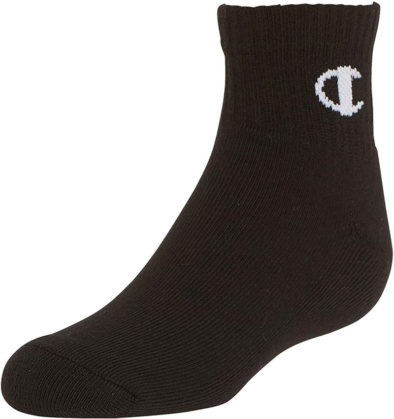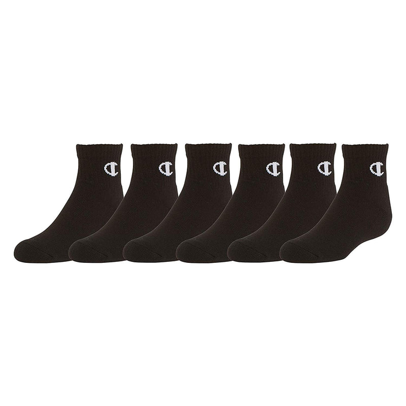 Champion Kids' Big 6-Pack Socks in Quarter or Low Cut, black, 7-9