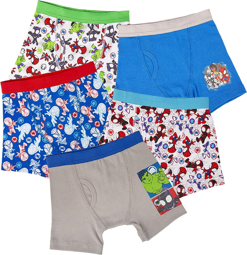 Marvel Boys' Toddler Spiderman and Superhero Friends 100% Combed Cotton Underwear Multipacks with Iron Man, Hulk & More, 5-Pack Boxer Brief Spidey Multi-Hero, 2-3T