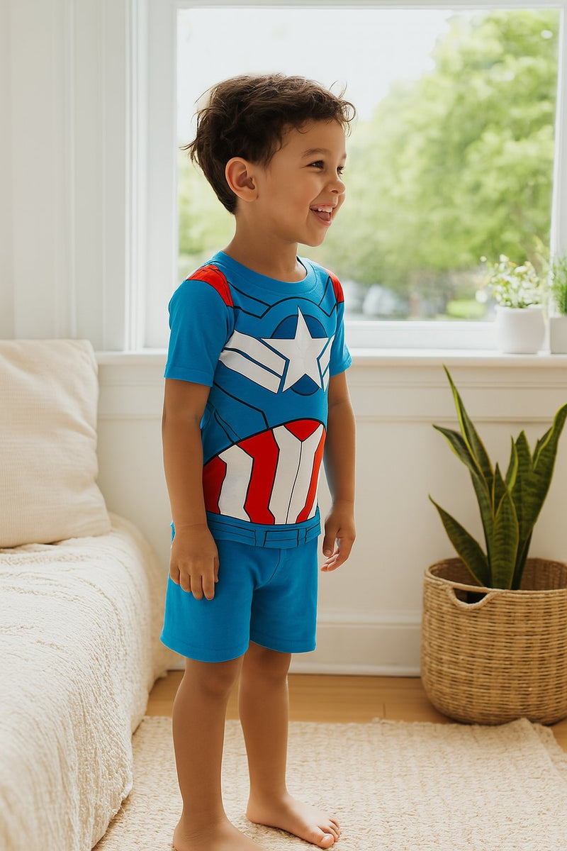 Centric Brands Marvel Captain America Boys' 4-Piece Pajama Set, 100% Cotton, Avengers Sleepwear, Sizes 4-10