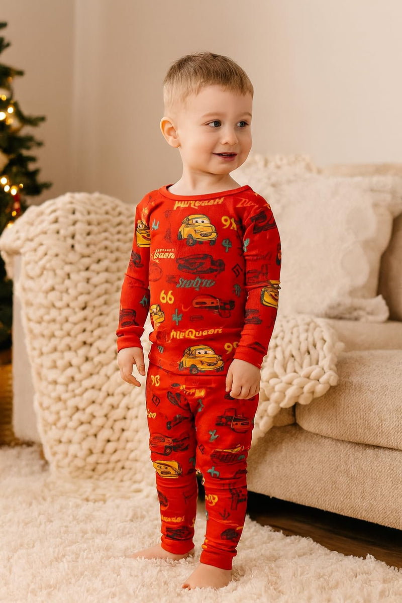 Disney Cars Boys’ Pajama Set – Long Sleeve Lightning McQueen Top & Matching Pants – Soft Viscose Spandex Kids Sleepwear