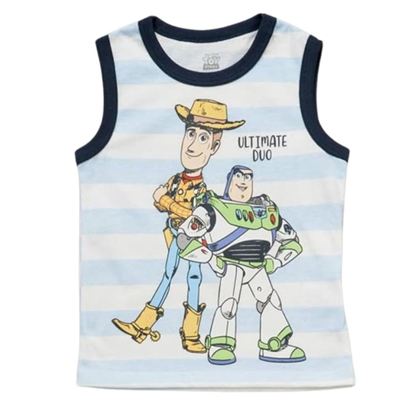 Disney Pixar Toy Story Boys’ Tank Top – Buzz Lightyear & Woody Graphic Shirt – Soft Cotton Blend Toddler & Kids Sleeveless Tee