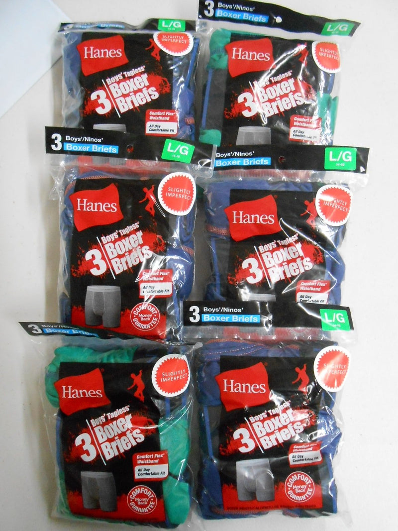 Hanes Boy's Boxer Briefs Underwear Size L(14-16) Lot of 18 PAIRS