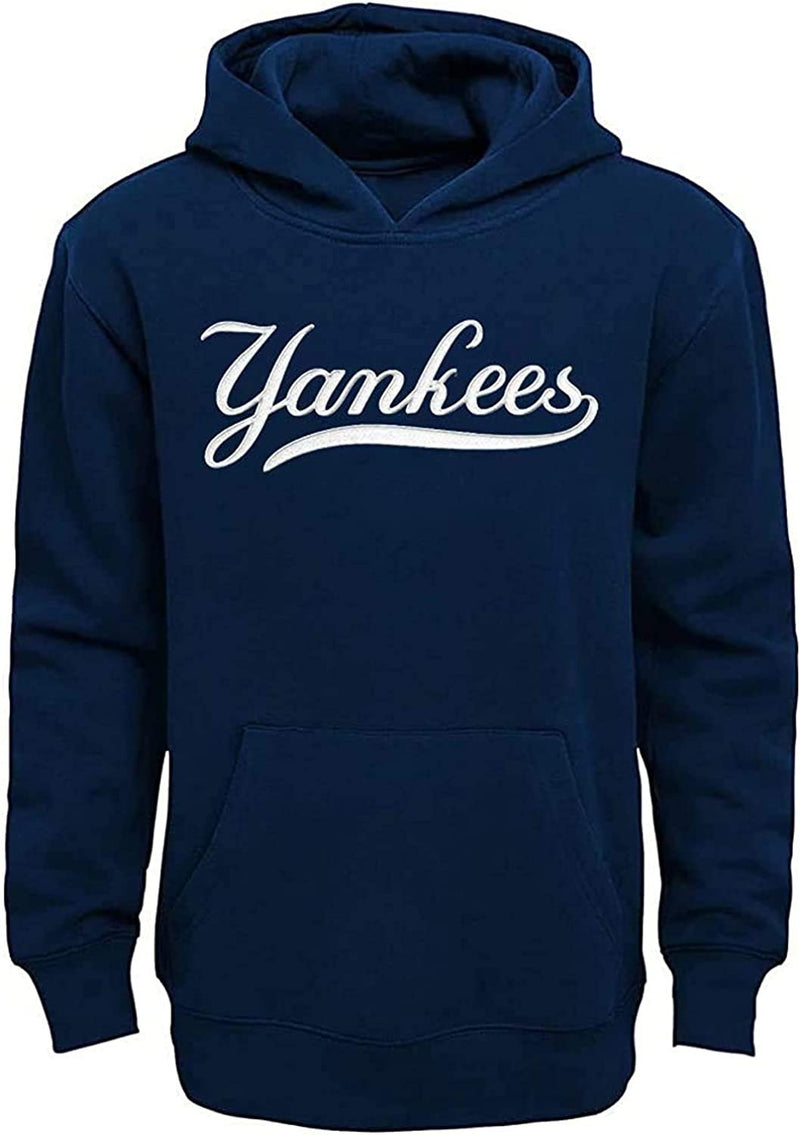 MLB Boys Kids 4-7 Team Color Wordmark Logo Pullover Fleece Sweatshirt Hoodie (New York Yankees, Kids 5/6)