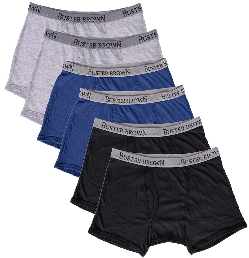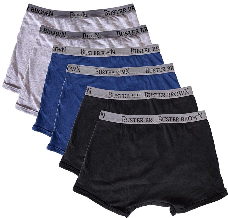 Buster Brown Big Boys 6 Pack Premium Cotton Knitted Boxer Briefs (Assorted Colors)