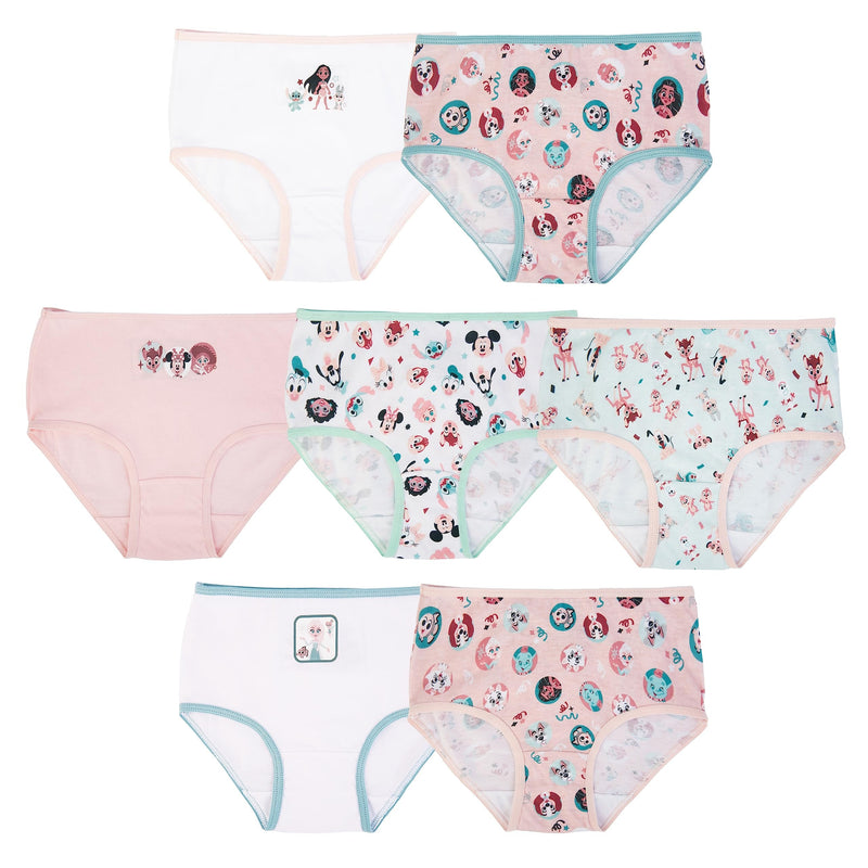Disney Girls' Anniversary 100% Cotton 7pk Panties with Bambi, Pocahontas, Chipmunks, Elsa & More Sizes 2/3t, 4t, 4, 6, 8