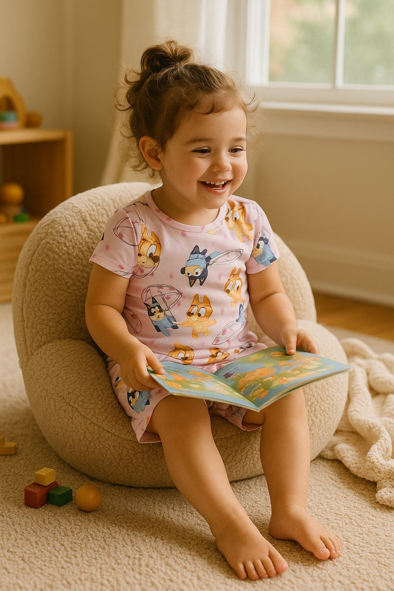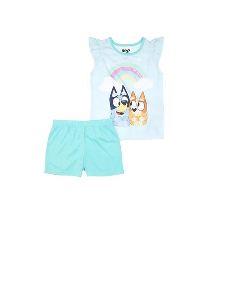 Bluey & Bingo Girls’ 2-Piece Pajama Set – Fun Rain-Themed Top & Biker Shorts – Toddler Sleepwear – Sizes 2T–4T