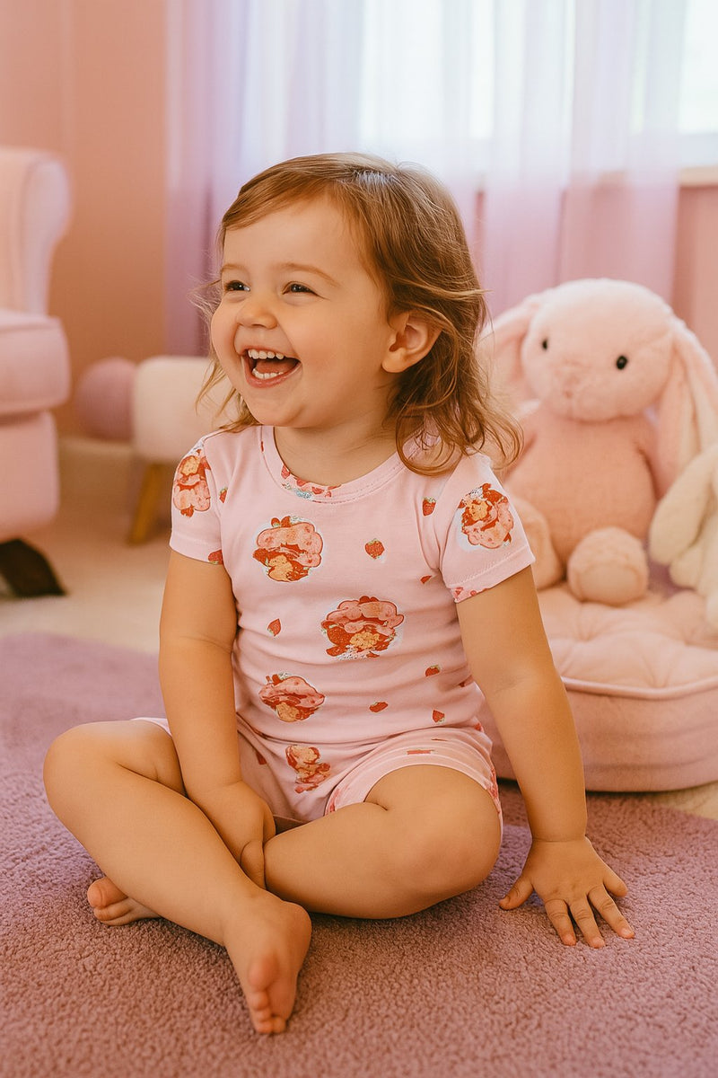 Strawberry Shortcake Girls’ Pajama Set – Crewneck Top & Shorts – Soft Viscose Blend – Sizes 2T–10