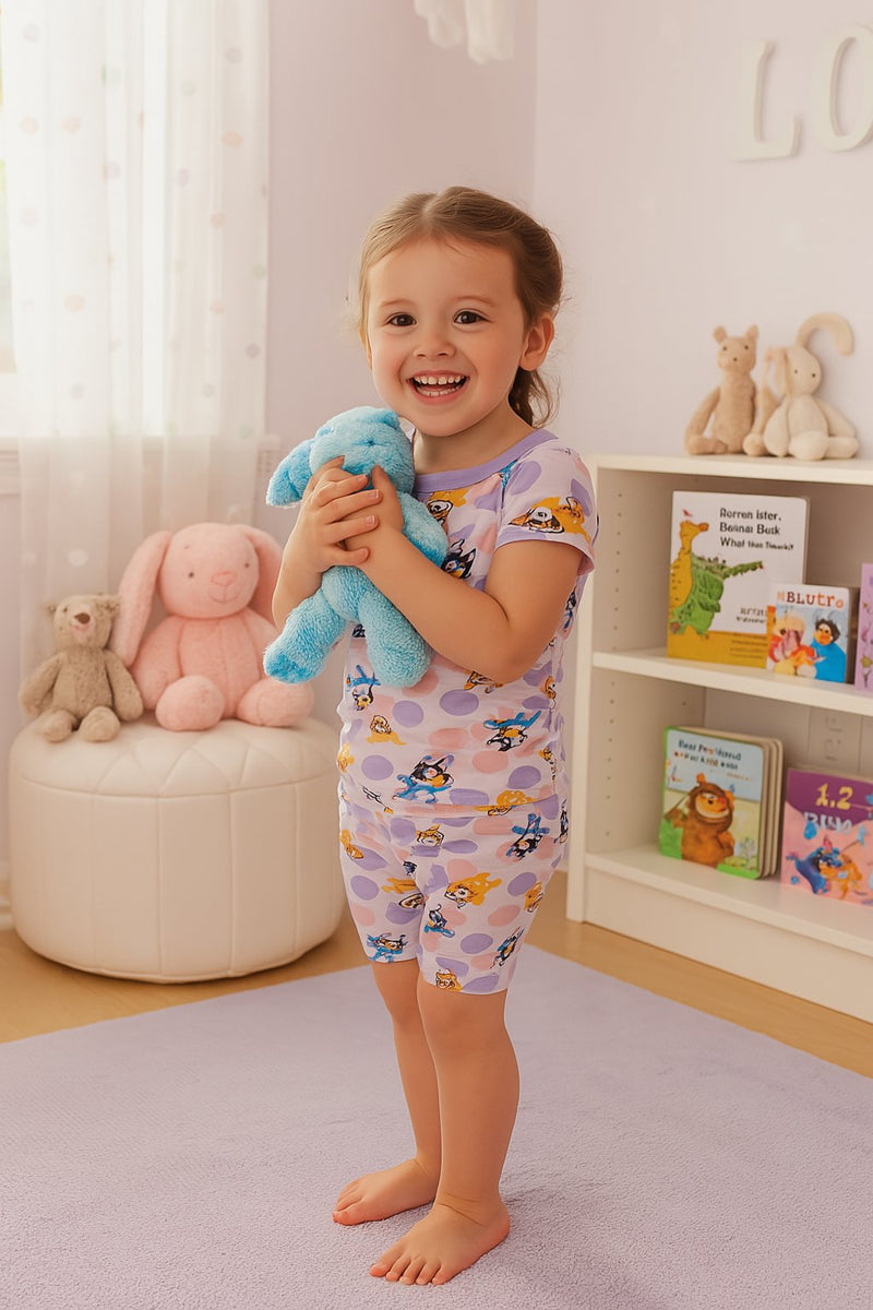Bluey & Bingo Girls’ 2pc Playful Dots Pajama Set – Short Sleeve Crewneck Top & Shorts – Sizes 2T–4T – Soft Sleepwear