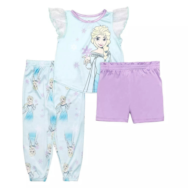 Disney Frozen Elsa Girls’ 3-Piece Pajama Set – Shirt, Pants & Shorts Sleepwear – Sizes 2T-4T