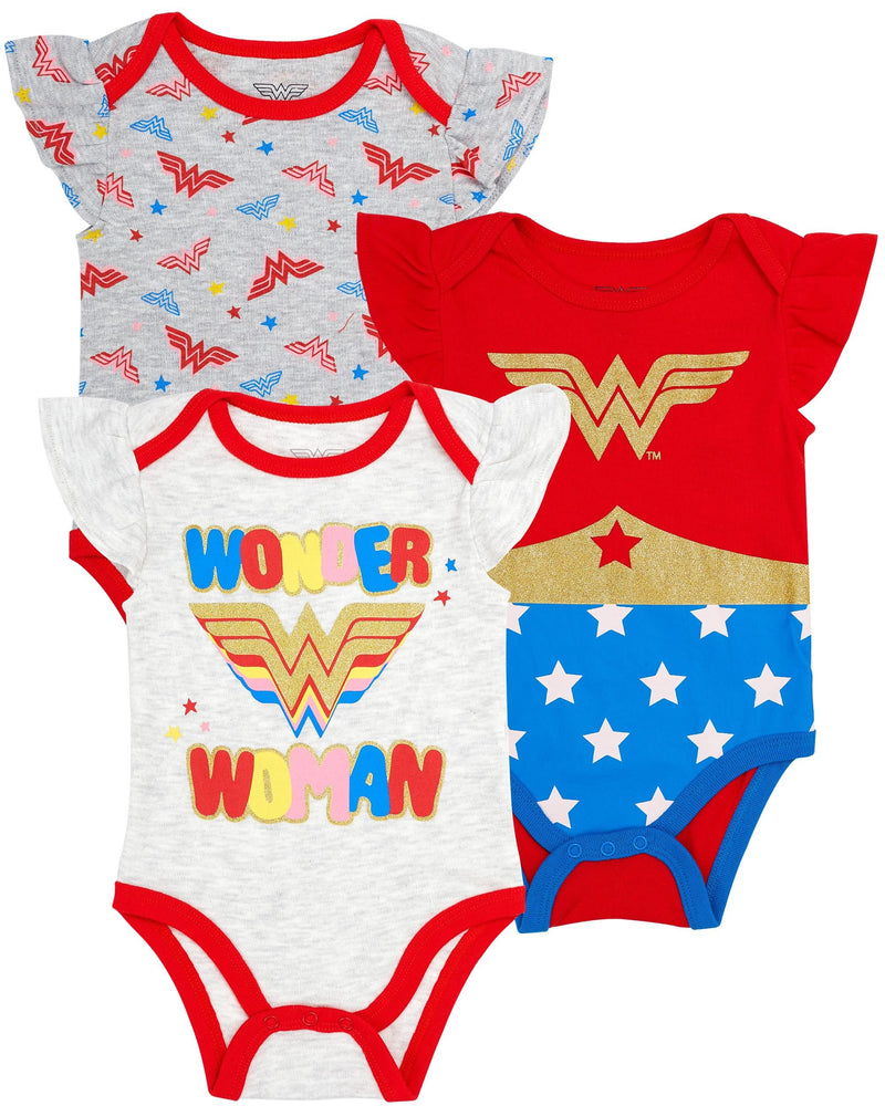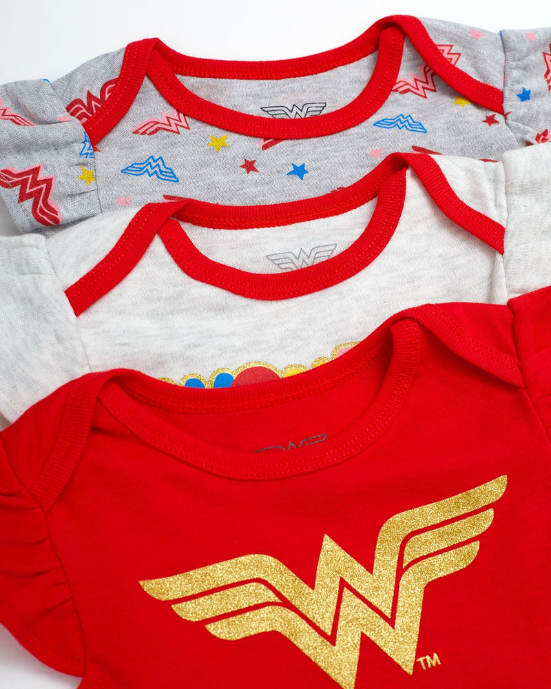 Wonder Woman Infant Baby Girls Bodysuit Baby Girl 3 Pack Gift Set (Red Multi, 6-9 Months)