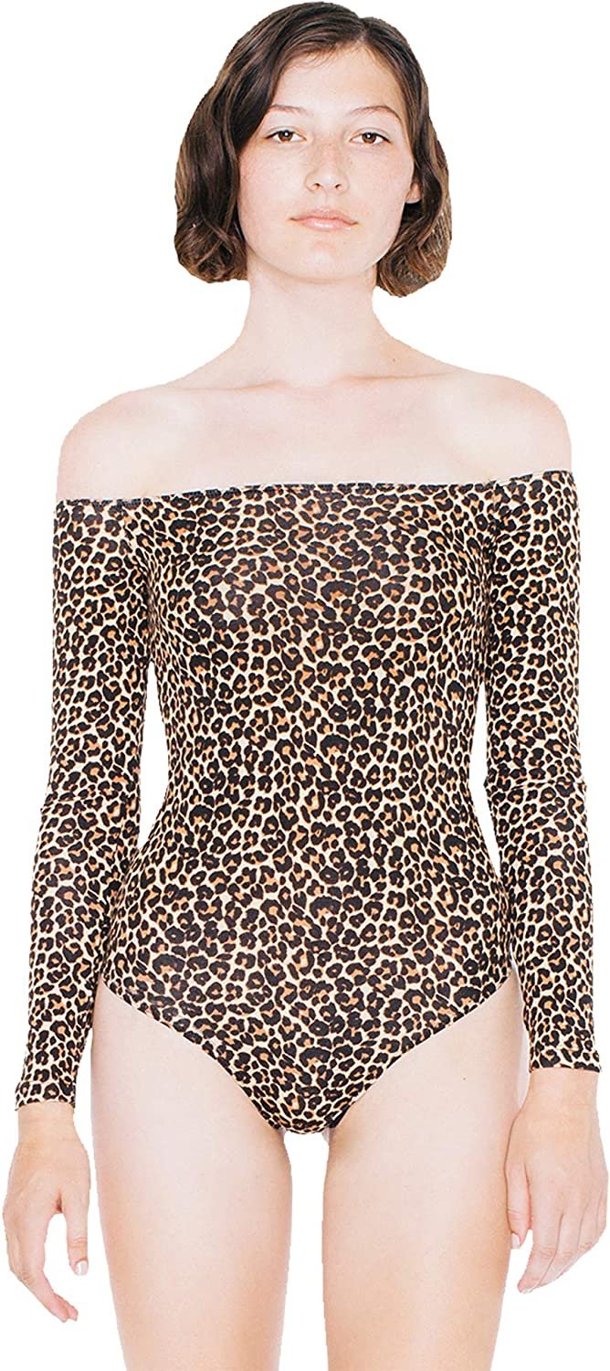 American Apparel womens Cotton Spandex Off-shoulder Long Sleeve Bodysuit