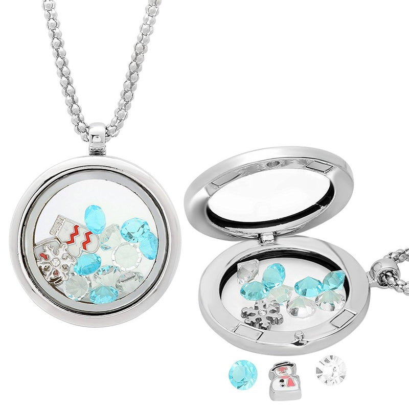 STEELTIME Women's 622044PK Alloy Round Locket Pendant with Xmas and Multicolor Simulated Gemstones Charms, Silver