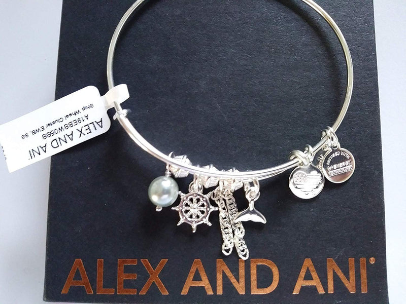 Alex and Ani Women's Ship Wheel Cluster Charm Bangle Bracelet, Shiny Silver