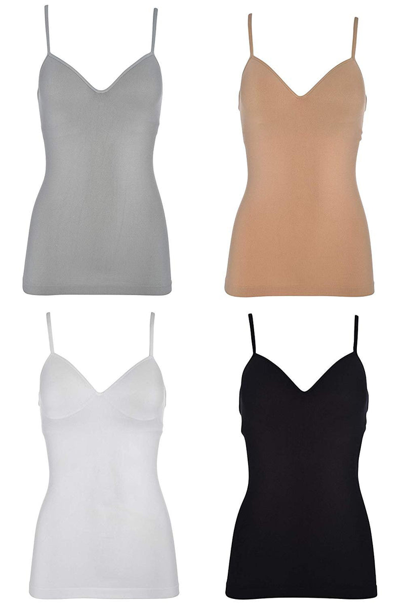 HEAD Women's Seamless Cami's Tanks 4 Pack Adjustable Spaghetti Padded Support