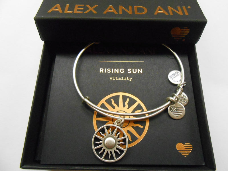 Alex and Ani Women's Rising Sun Charm Bangle Bracelet, Rafaelian Gold, Expandable