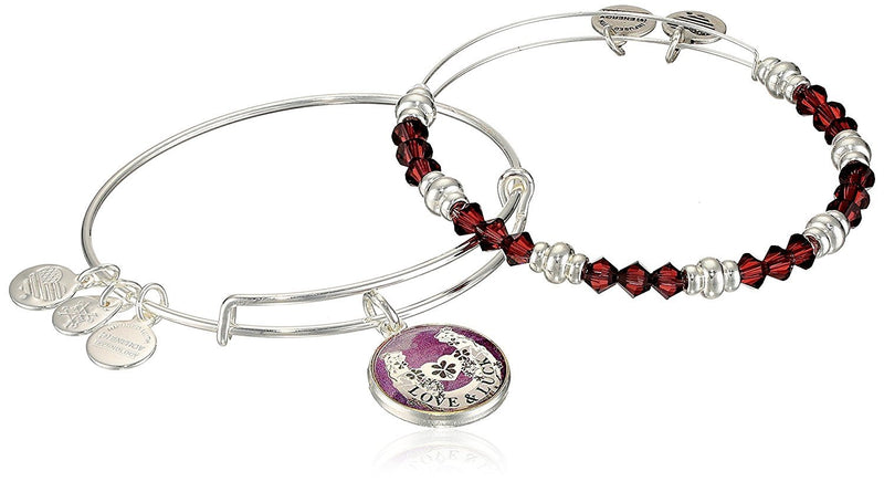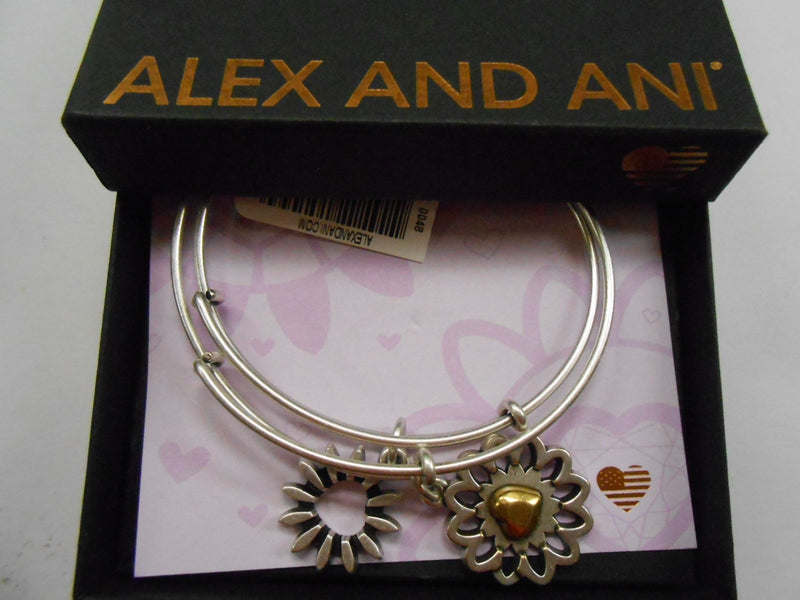 Alex and Ani Women's You Are My Heart, Two Tone, Set of 2 Bangle Bracelet, Rafaelian Silver, Expandable