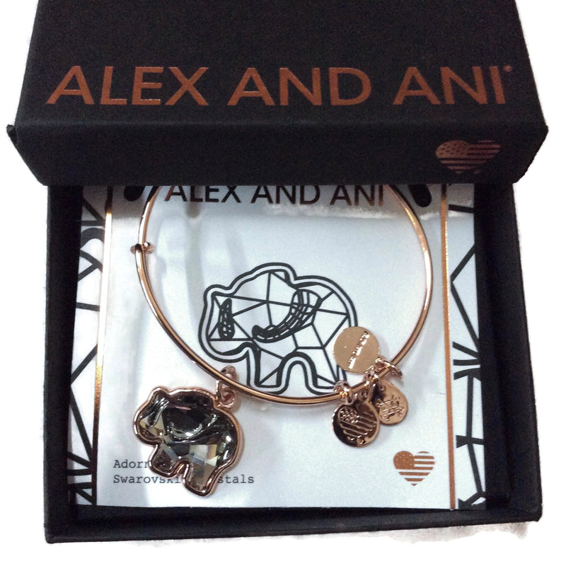 Alex and Ani Women's Crystal Elephant Charm Bangle, Shiny Rose Gold