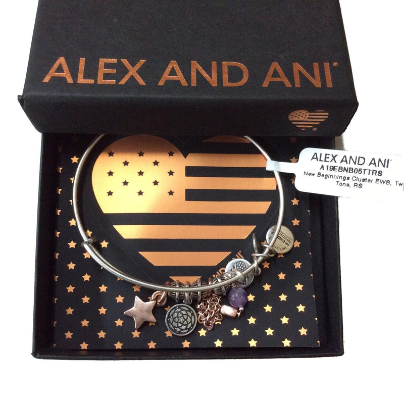 Alex and Ani Women's New Beginnings Cluster Charm Bangle Two Tone, Rafaelian Silver