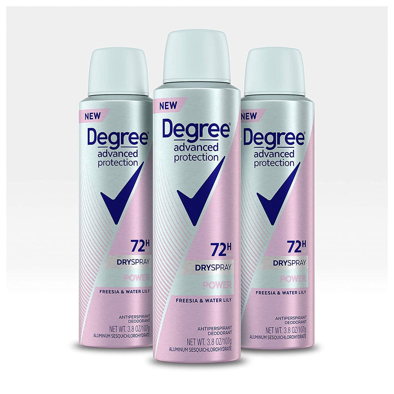 DEGREE WOMENS DEO Advanced Protection Antiperspirant Deodorant Spray 72 HR Wetness Protection Power Strongest Antiperspirant Spray for Excessive Armpit Sweat 3.8 oz 3 Count