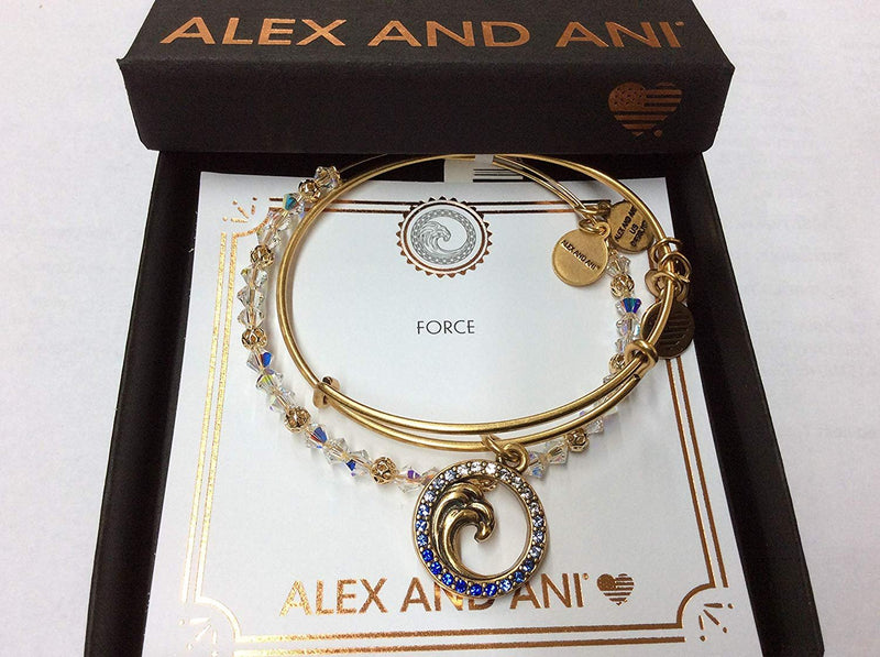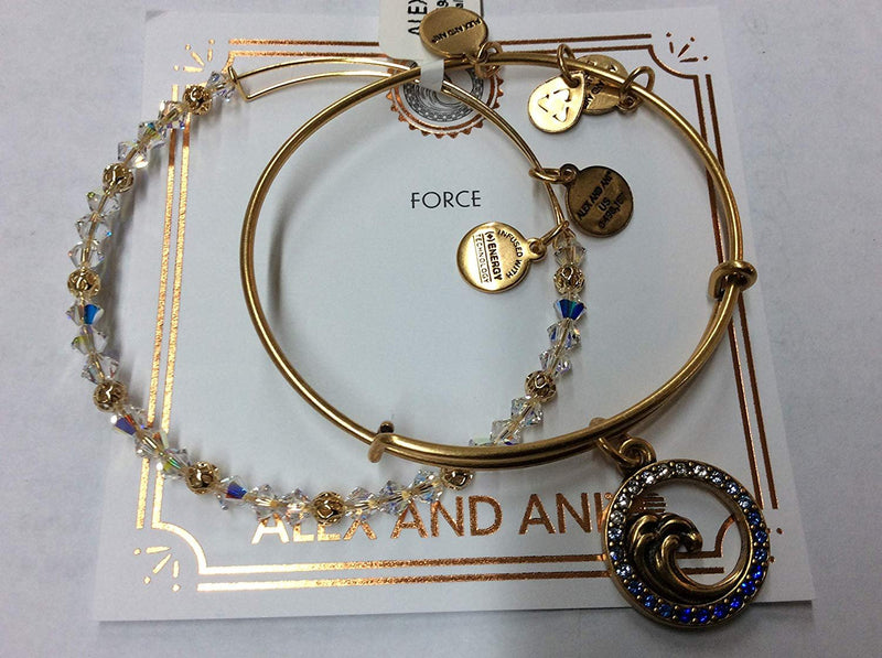Alex and Ani Women's Crystal Wave Set of 2 Bracelet, Rafaelian Gold