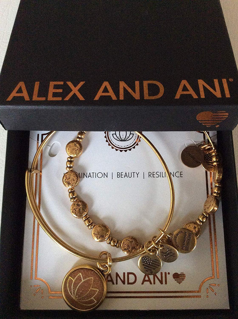 Alex and Ani Women's Lotus Wood Charm Two-Tone Bracelet Set of 2