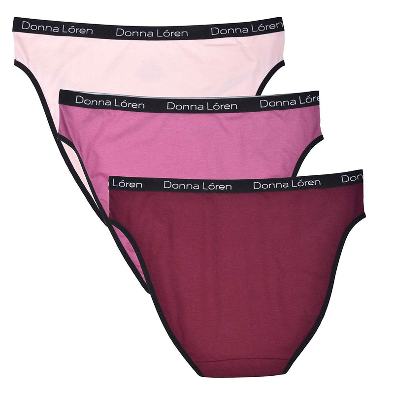 Donna L'oren Women's Hi-Cut Briefs 3-Pack Printed Waistband Panties S-XL