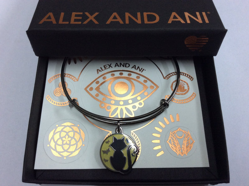 Alex and Ani Women's Color Infusion Black Cat Charm Bangle Midnight Silver, Midnight Silver