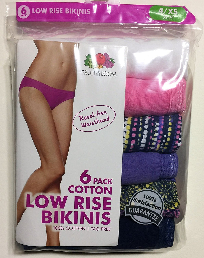 Fruit of the Loom Women's 6 Pack Assorted Cotton Low-Rise Bikini Panties