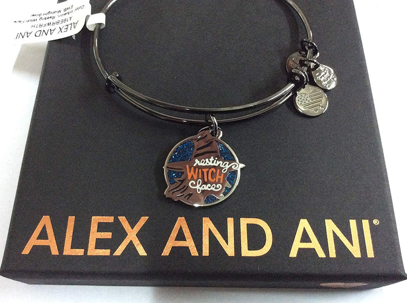 Alex and Ani Women's Color Infusion Resting Witch Face Charm Bangle, Midnight Silver