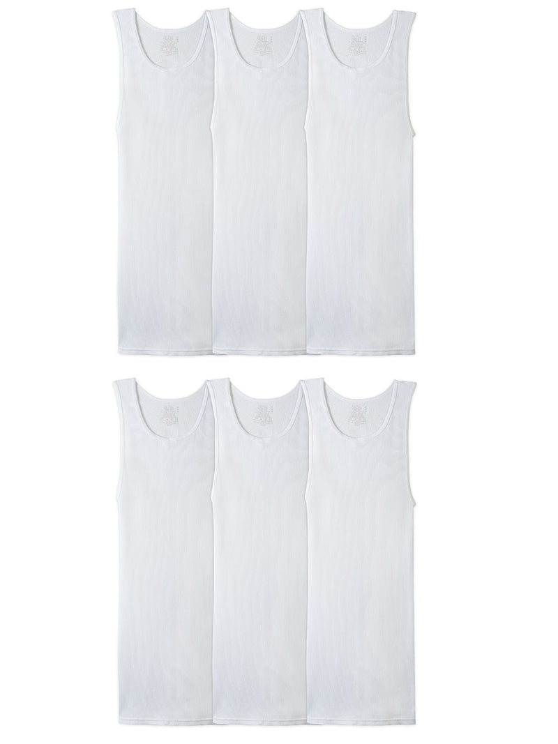 Fruit of the Loom Men's Sleeveless Tank A-Shirt, Tag Free & Moisture Wicking, Ribbed Stretch Fabric, Big Man-6 Pack-White, XX-Large
